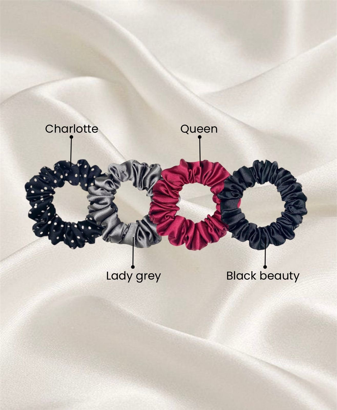 The CLASSIC MINI Set is made out of premium quality satin silk, this scrunchie isn't just beautiful, it's designed to be gentle on your hair and provide you with all the goodness a regular hair elastic fails to give you. These unlike regular ones will not cause dents or crease your hair. Say goodbye to hair breakage and invest in your hair while looking chic.