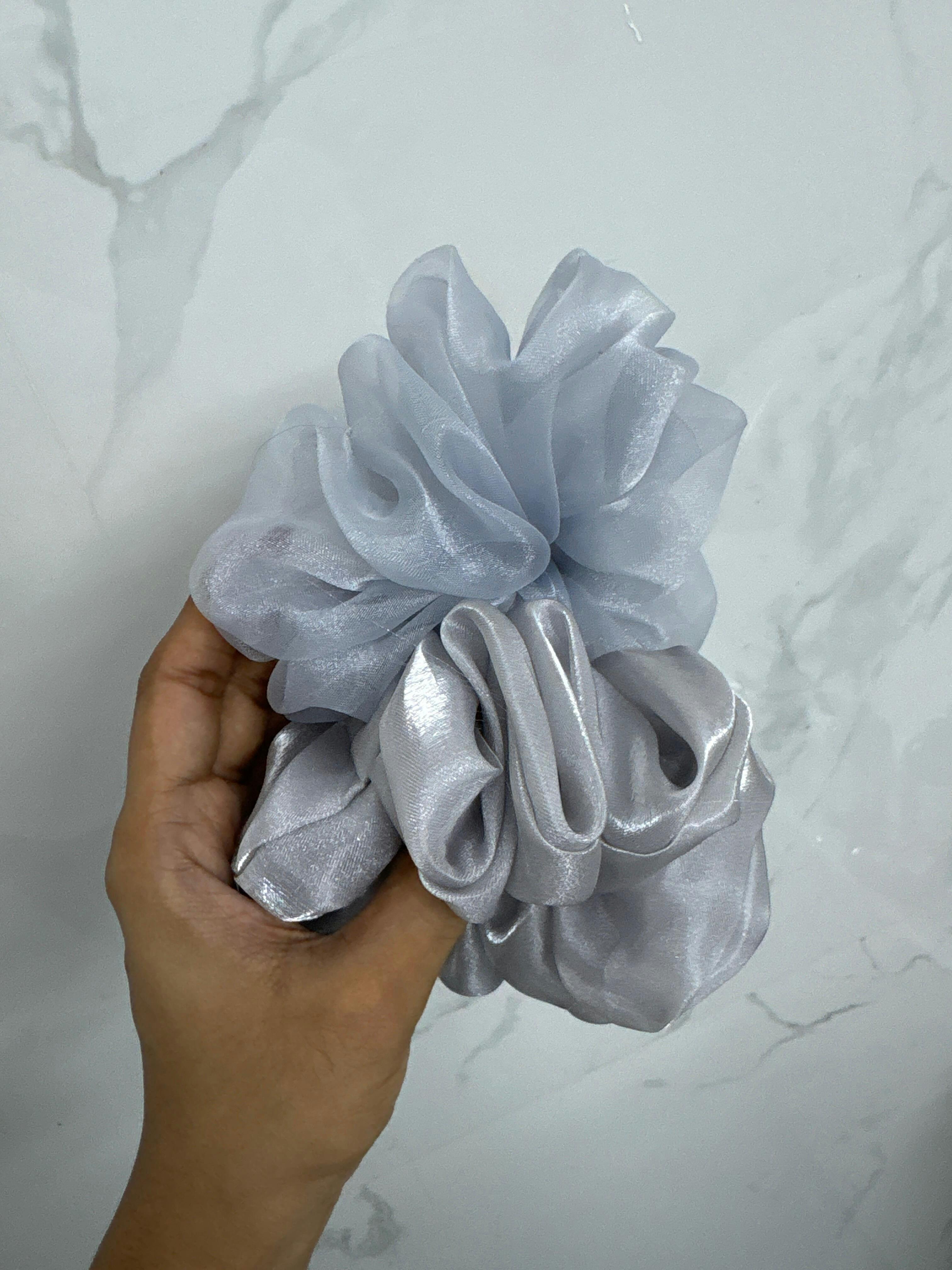 This Organza scrunchie in Powder blue along with classic white is a perfect summer scrunchie set. It's the perfect accessory for your beach looks, pool looks, or to add to your everyday looks. Made with a beautiful sheer blue organza fabric, this scrunchie will elevate any hairstyle and add a delicate and feminine touch. We are so excited for you to try it on and look and feel your absolute best self.
