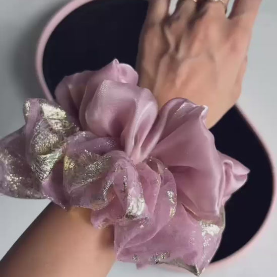 Add a touch of whimsy to your hair with this magical sheer soft pink scrunchie combo. The delicate pink hues and airy fabric create a fairy-like charm, perfect for playful days and dreamy looks