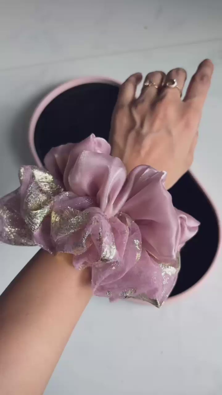 - 2 Organza scrunchies- in Soft Pink & Soft Pink with Gold detailing